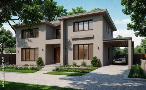 A Contemporary Dwelling with Stylish Architecture, Beautiful Exterior Design, and a Serene Garden Setting. Perfect Family Home in a Residential Neighborhood, Featuring Thoughtful Construction