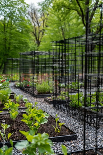 urban, garden, metal, cage, raised, bed, greenery, park, modern, contemporary, plant, vegetable, nature, landscape, sustainable, environment, horticulture, spring, fresh, growth, foliage, design, architecture, city, environmentally friendly, cultivation, agriculture, scenic, vibrant, healthy, lifestyle, dirtied, pathway, organised, neat, row, tree, leaf, serene, peaceful