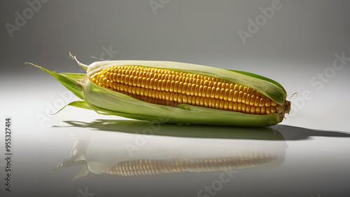 A corn shown with a shadow on white background. Ai Generated
