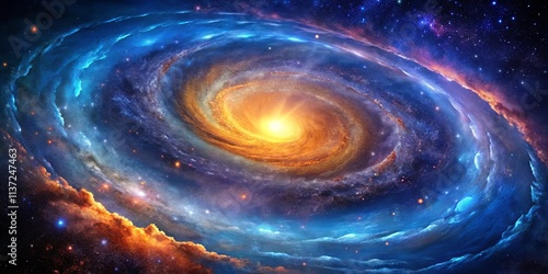 A Cosmic Dance of Light and Dust, Swirling in a Tapestry of Blue, Orange, and Starlight