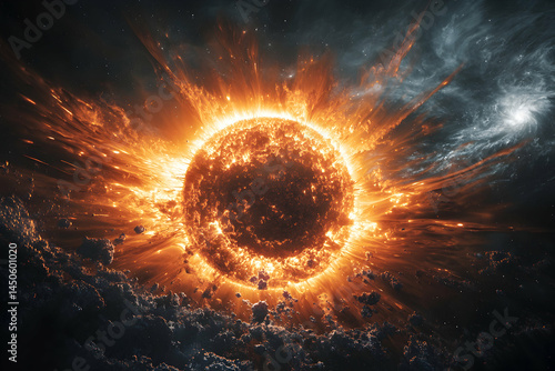 A cosmic explosion erupts with fiery energy. It could be used as a dramatic visual for sci-fi stories or epic art projects.