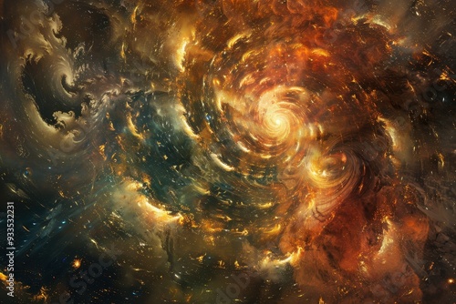 space, nebula, galaxy, star, dust, cosmic, swirl, spiral, core, bright, gold, orange, red, brown, black, dark, abstract, celestial, astronomic, universe, night, sky, light, glow, vibrant, textured, pattern, background, deep, huge, infinite, wonder, awe, beauty, mysterious, aethereal, magical