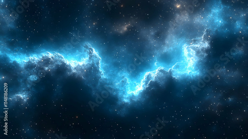 A cosmic scene featuring glowing clouds and stars in a deep space environment.