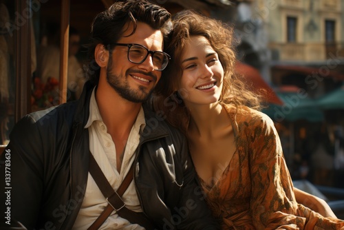 A couple enjoying a gondola ride in Venice, Italy