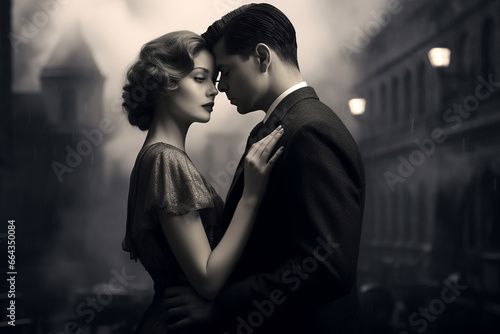 affectionate, black-and-white, embracing, girlfriend, horizontal, man, photo, romance, suit, togetherness, two people, woman, young adult, clothing, facial expression, young couple, adult, outdoors, toothy smile, waist up, wicker, young men, missy, adults only, day