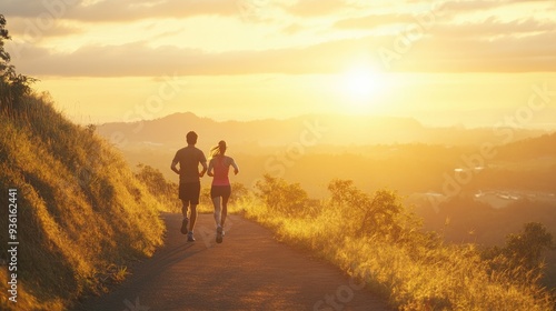 running, couple, sunrise, trail, jogging, fitness, exercise, nature, scenic, healthy lifestyle, cardio, early morning, athletic, wellness, togetherness, health, motivation, countryside, endurance, physical exercise, sunlit, physical activity, runner