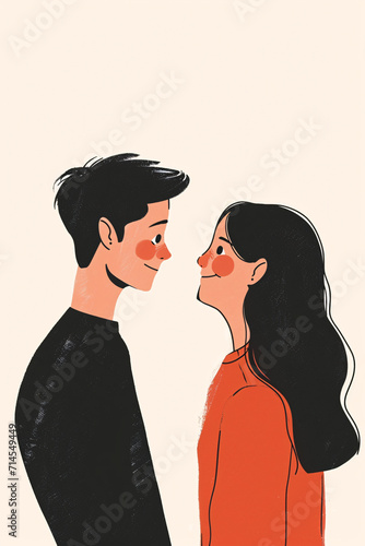 a couple looking at easy other and smiling vector cartoon illustrations with copy space for Valentine;'s Day card