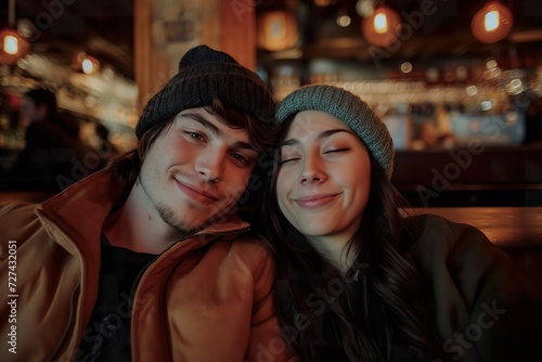 winter, couple, selfie, mobile phone, technology, romance, affection, love, human relationships, togetherness, happiness, bonding, connection, cold weather, young couple, winter fashion