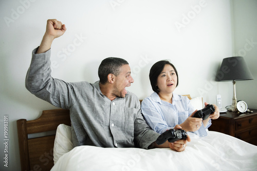 adult, apartment, asian, asian ethnicity, awake, bed, bedding, bedchamber, blanket, boyfriend, chinese, compete, competition, condo, condominium, console, couple, diversity, dwell, encouragement, enjoy, enjoying, entertain, entertainment, female, fun, game, game console, girlfriend, happiness, happy, home, house, husband, interracial, japanese, south american, take care, together, togetherness, 2, video game, wife, woman