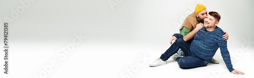 banner, bliss, man, caucasian, photogenic, stylish, fashionable, couple, people, sitting, ground, connection, nature, loving, gay, pet, relaxation, harmony, calm, companionship, bonding, human relationships, outdoors, hugs, friendship, togetherness, leisure, quality time, joy, happiness, love, care, comfort, affection, contentment, enjoying, moment, resting, calmness, mindfulness, key