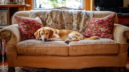 cosy, couch, dog, curled, home, life, relaxation, comfort, pet, warmth, living, room, fur, peaceful, soft, domestic, quiet, interior, resting, furry, furniture, blanket, love, safe, bond, space, casual attire, leisure, companionship, everyday