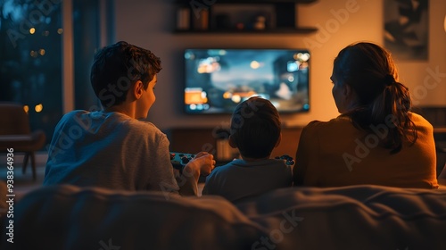 family, children, gaming, togetherness, eltern, cosy, evening, home, entertainment, leisure, screen, interaction, digital, lifestyle, bonding, happiness, children, technology, play, fun, indoor, sitting, watching, sibling, joy, relaxation, love, modern, living room, casual attire, friends, connection, smile, activity, colourful, cheerful, family time, oneness, joyfulness, engagement, weekend