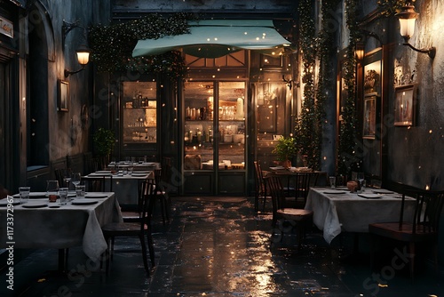 eatery, table, chair, evening, light, plant, ambience, dining, decor, cosy, urban, architecture, alley, reflections, glasses, warmth, inviting, atmosphere, food, leisure, social, gathering, intimate, setting, nature, design, hospitality, elegance, calmness, scenery, urbanism, culture, life events, culinary, romance, city, pathway, environment, aesthetic, style, charme, relaxation, night, comfort