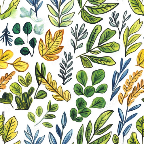 leaf, wax crayons, leaf, foliage, drawing, tile, tileable, seamless, endless, simple, naive, primitive, childish, children, children, white, colourful, many-coloured, fall, autumn, background, wallpaper, detail, various, green, blue, yellow, doodle, different, variety, botanical, nature, many, lot, isolated, funny, group, botany, illustration, no people, nobody