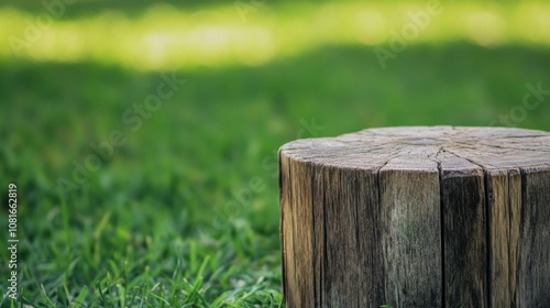 cricket, wooden, stump, texture, setting, green, grass, artistic, style, photo, closeup, shot, weathered, grain, ample, white, space, center, text, high, quality, image, essence, equipment