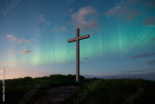 faith, cross, hill, sky, glowing, light, heaven, symbol, religion, christianity, spirituality, hope, belief, religious, landscape, sunrise, sunset, dawn, dusk, illuminated, bright, aethereal, divine, sacred, holy, peaceful, serene, tranquil, majestic, inspiring, powerful, silhouette, outdoors, nature, cloud, gold, yellow, orange, purple, blue, white, sunlight, ray, glow, celestial, spiritual, worship, prayer, christian
