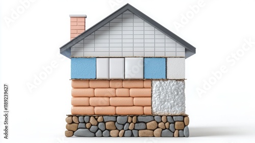 A cross-sectional view of a house wall showing detailed layers of insulation materials