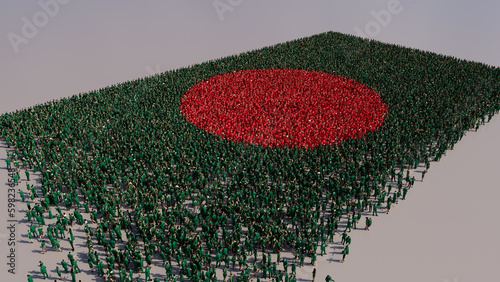 A Crowd of People coming together to form the Flag of Bangladesh. Bangladeshi Banner on White.