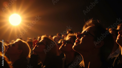 audience, crowd, people, light, performance, event, excitement, awe, entertainment, show, concert, theatre, spectator, night, illumination, wonder, watching, facial expression, outdoors, nature, bright, sunlight, theatre, emotion, joyful, amazed, view, beam of light, optical illusion, backlight, curious, admiration, appreciation, light rays, night sky, ambience, cinematic, stage, thrill, atmosphere