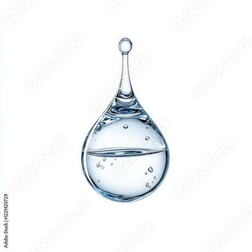 A crystal-clear water droplet suspended in mid-air, showcasing its reflective properties and the beauty of nature's elements. Ideal for environmental themes.