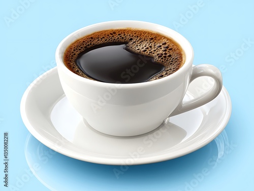 hot drink, cup, black, coffee cup, caffeine, beverage, drink, hot, morning, breakfast, energy, dark, aroma, smell, fresh, delicious, white, saucer, porcelain, ceramic, liquid, brown, foam, crema, stimulant, mug, espresso, single, serving, 1, isolated, background, blue, studio, shot, image, photo, picture, drinkable, hot drink, caffeinated, roasted