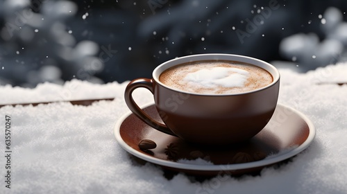 a cup of coffee on white snow