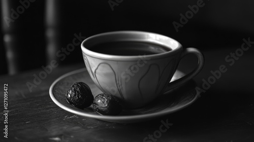 hot drink, milk, chocolate, sweetness, black, white, cup, snack, midday, break, comforting, drink