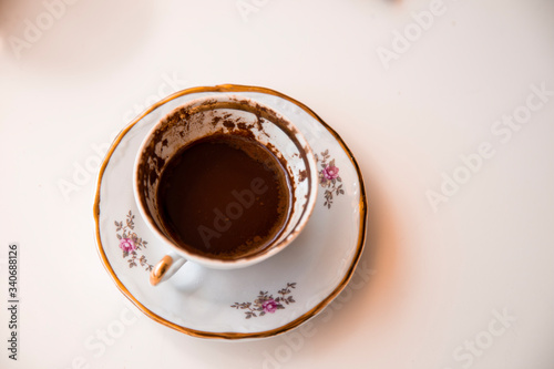 A cup of Turkish coffee, traditionally using for fortune telling. traditional porcelain turkish coffee cup. white background