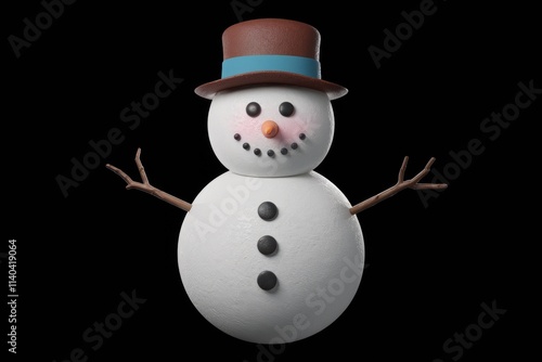 snowman, three-dimensional, rendering, winter, christmas, holiday, cute, snow, hat, buttons, happy, cheerful, festive, season, celebration, december, jan, snow globe, winter landscape, frosty, jolly, fun, digital artwork, illustration, graphic design, animation, cartoon
