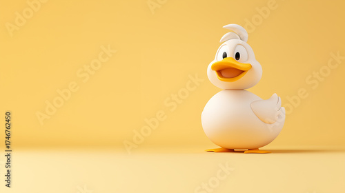 A cute and cheerful rubber duck sitting against a bright yellow background, perfect for childrens toys or bath time themes