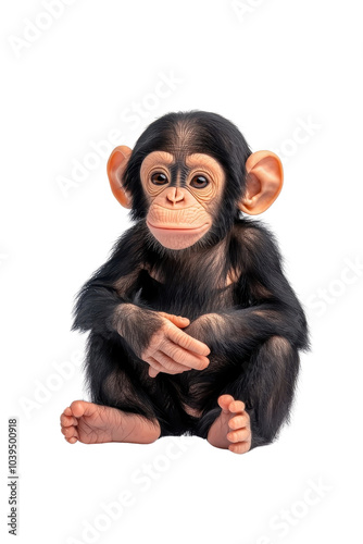 A cute baby chimpanzee, isolate on white background, radiating innocence and charm. cutout png