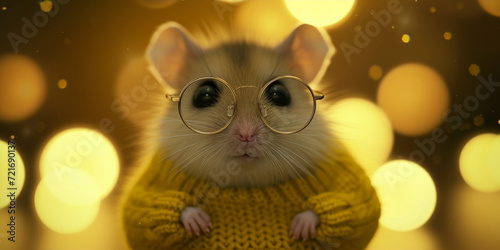 a cute baby hamster wears glasses in a little sweater, generative AI
