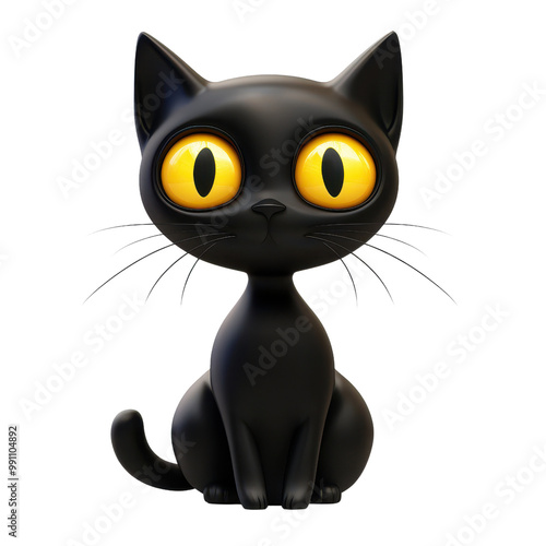 A cute black cat character with large yellow eyes, perfect for illustration, branding, or pet-related themes., isolated on a transparent background.