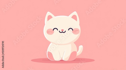 cat, cartoon, animal, cute, happy, smile, pink, background, character, illustration, adorable, furry, whisker, ear, tail, paw, body, face, eye, cheek, reddening, sitting, stylised, design, drawing, graphic, simple, flat, soft, gentle, friendly, lovely, cheerful, playful, delightful, innocent, light, shadow, outline, shape, positive, warmth, joy, happiness, comfort, dream, sweetness