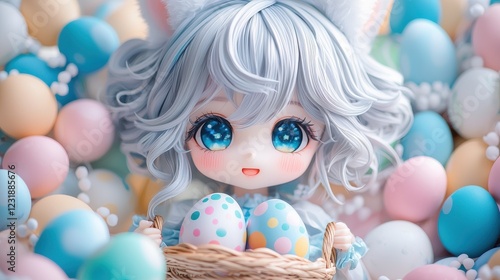 pastel, character, doll, cute, easter, egg, basket, unique, imagination, playful, figure, fantasy, vibrant, photo, creativity, joy, display, aesthetic, festive, scene, whimsical, charme, adorable, happiness, toy, outfit, craftsmanship, hand-made, craft, gift, collectable, rabbit, art, plush, childhood, cheerful, style, design, celebration, colourful, beauty, decoration, bright, spring