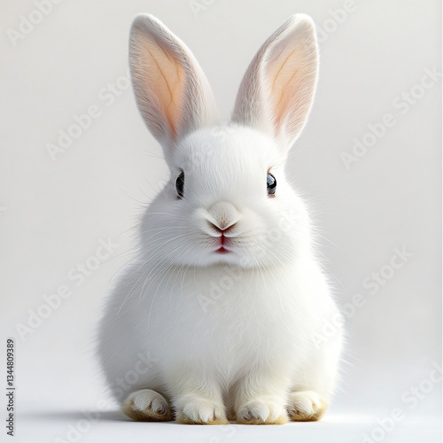 A cute fluffy white rabbit, perfect for Easter, children's themes, or pet care promotions, radiating innocence and warmth with ample copy space.