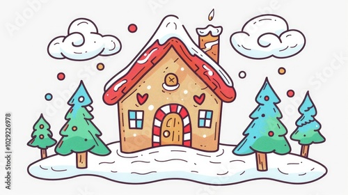 christmas, winter, house, snow, landscape, tree, holiday, christmas, village, home, night, vector, illustration, season, card, cold, cartoon, scene, snowflake, celebration, building, decoration, sky, snowman, bungalow