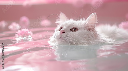 cat, cute, little, play, pink, pool, pet, kitten, adorable, fun, playful, water, felino, animal, swimming, splash, fluffy, furry