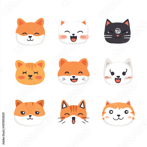 cartoon, animal, cat, vector, illustration, set, dog, tiger, head, icon, pet, funny, character, baby, face, bear, cute, fun, kitten, lion