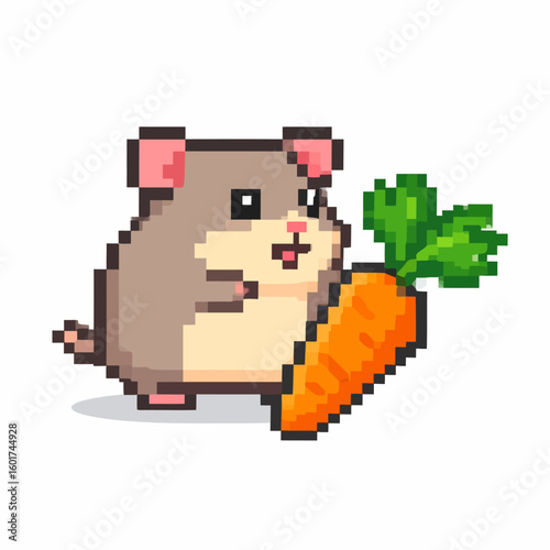 hamster, rodent, pet, animal, creature, character, mascot, critter, mouse, carrot, vegetable, food, snack, treat, root, plant, greener, leaf, top, pixel, pixelated, art, artwork, illustration, drawing, graphic, design, icon, symbol, sprite, retro, vintage, old, school, game, gaming, video, arcade, computer, digital, mosaic, square, pixelation, cute, adorable, charming