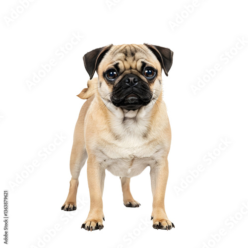 dog, pug, pet, animal, canino, breed, small, short hair, fawn, portrait, standing, paw, cute, domestic, mammal, studio, funny, wrinkled