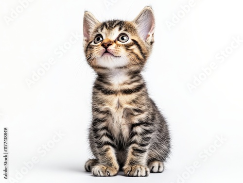 kitten, cat, tabby, cute, animal, pet, felino, small, young, domestic, mammal, adorable, eye, looking, sitting, white, background, furry, striped, tiny, paw, baby, portrait, studio, isolated, sweet, creature
