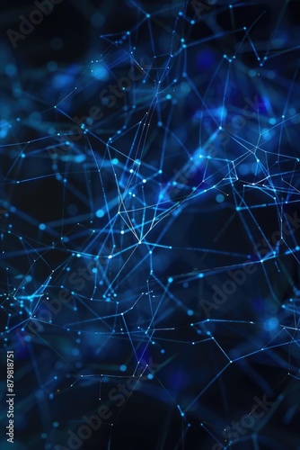 A dark blue background featuring many interconnected lines