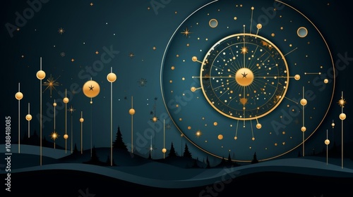 dark, blue, background, large, gold, circle, center, many, star, small, vector, design, moon, celebration, decorative, culture, traditional, card, abstract, religion, greeting, ramadan, illustration, islam, arabic, muslim, gold, pattern, night, festival, holiday, ornament, lantern, banner, beautiful, art, poster, light, template, crescent, eid, holy, symbol, graphic, mosque, month