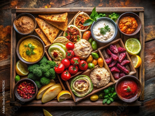 A dark, moody feast: Lebanese mezze under the night sky, showcasing authentic Middle Eastern cuisine.