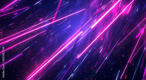 A dark purple background with neon pink and blue lights in motion, creating an energetic and vibrant atmosphere