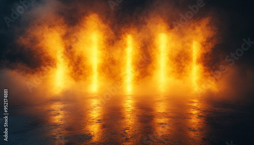 asphalt, abstract, yellow background, empty, scene, neon light, spotlight, smoke, night view, urban, urban scene, city, city landscape, industrial, street, abstract art, minimalist, modern, contemporary, nightlife, city lights, city landscape