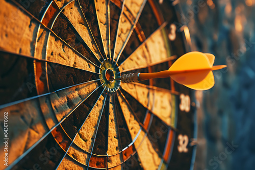 A dart precisely hitting the middle of a target, symbolizing accuracy and success in achieving goals.