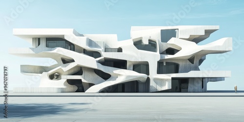 A deconstructivist building with fragmented and irregular forms, defying traditional architecture