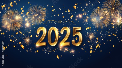 2025, new year, celebration, fireworks, confetti, banner, decorative, stylish, gold, vibrant, festive, party, design, event, excitement, atmosphere, joyful, bright, sparkle, light, countdown, welcome, holiday, graphic, creativity, background, seasonal, colourful, midnight, decoration, grandeur, innovative, optimism, hope, future, adornment, greeting, announcement, commemorative, uplifting, anticipation, cheer, happiness